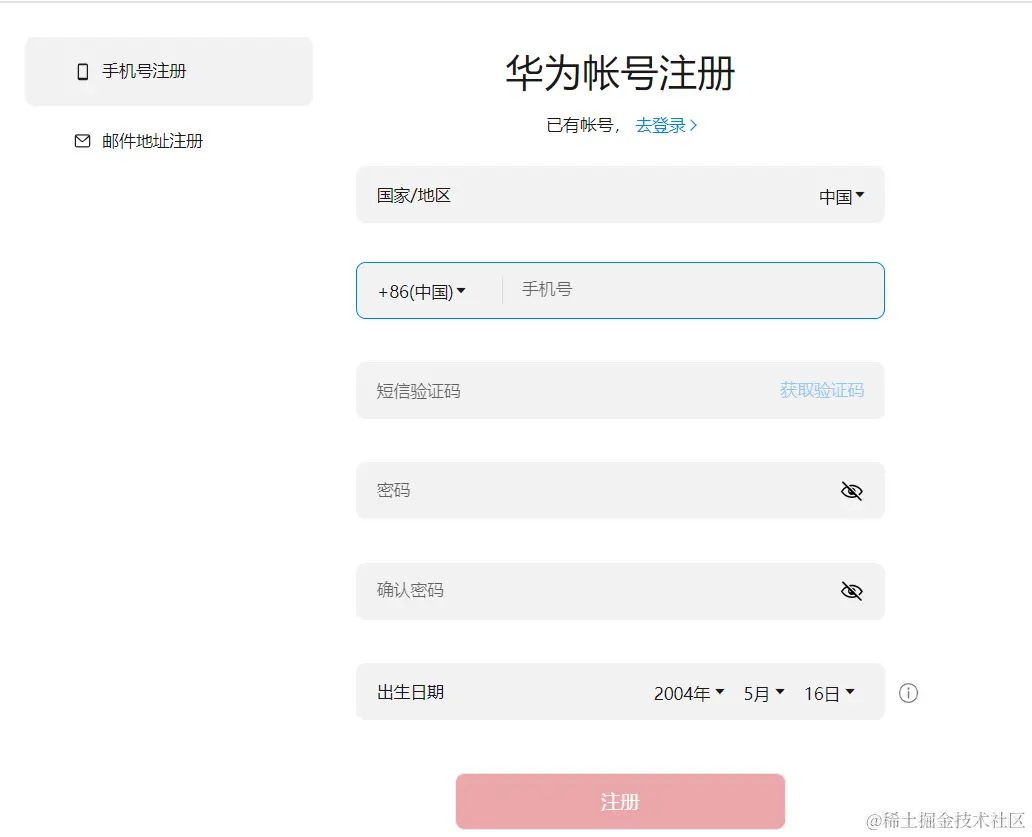 3、注册华为账号,记得在备忘录保存好密码,不要遗忘哦!填写完以下信息就完成了账号注册。