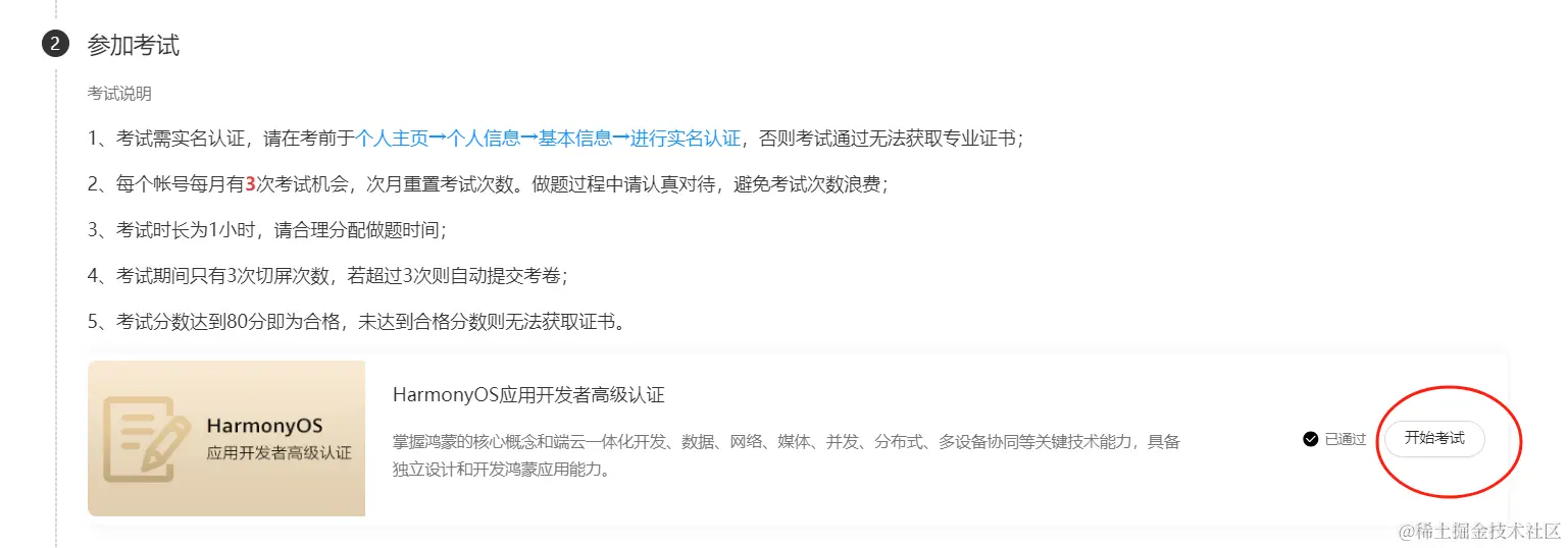 打开考试链接:https://developer.huawei.com/consumer/cn/training/dev-cert-detail/101684223987951077