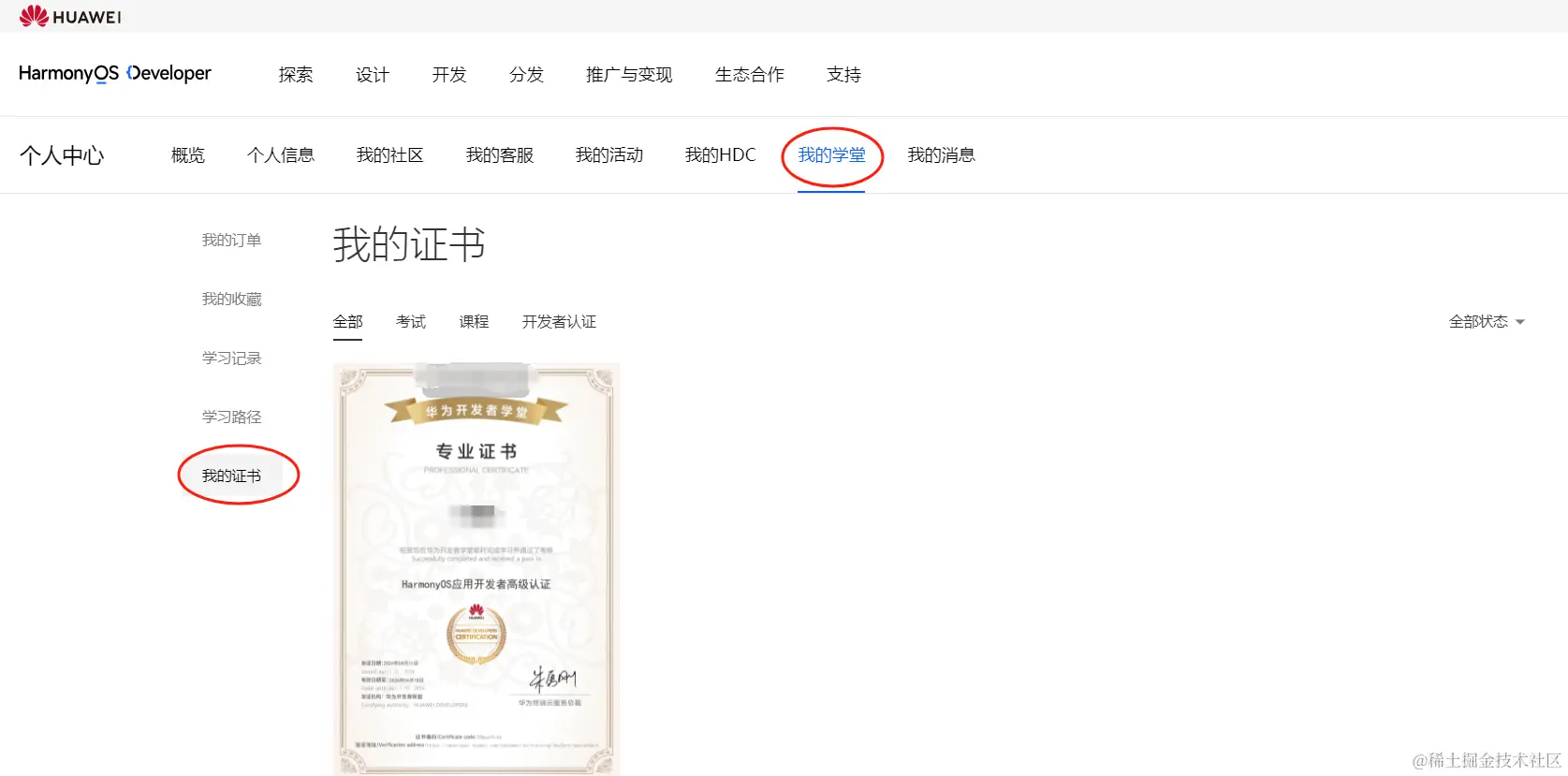 点击头像,前往我的学堂-我的证书-我的开发者认证查看证书和下载电子证书(查看证书前,请确保已实名认证)。证书自颁布之日起2年内有效。