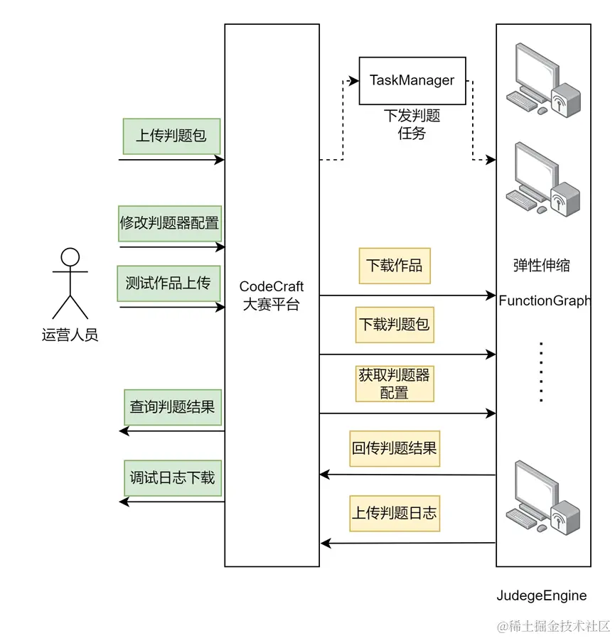 华为云大赛平台的团队经过深思熟虑,明确了改造思路并优化了工作流程,对判题器进行了如下改造: