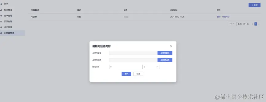 运营人员在后台管理portal上创建判题器