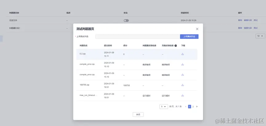 运营人员在后台管理portal上测试判题器