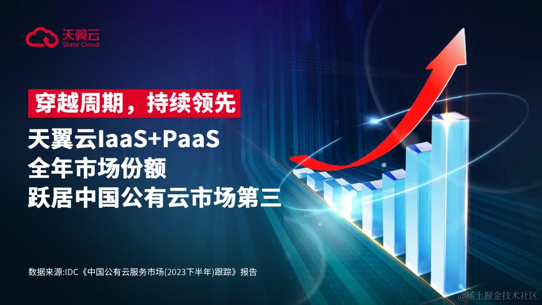 近日,国际数据公司(IDC)发布《中国公有云服务市场(2023下半年)跟踪》报告。中国电信天翼云在市场进入战略调整期的背景下,2023年H2实现公有云IaaS市场份额增长至12.9%,位居业内第三。同时,2023年全年天翼云IaaS+PaaS市场份额增长至11.1%,同比提升1.3pp,跃升至中国公有云市场第三位。