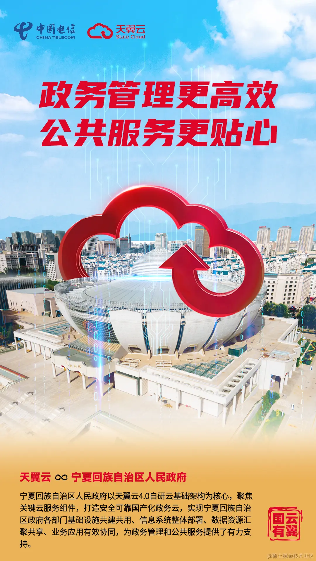 宁夏回族自治区(后称宁夏)人民政府不断加强数字技术在助推社会治理、赋能民生服务中的应用,携手天翼云打造了安全可靠的国产化政务云平台,推动当地政务信息化管理架构、业务架构、技术架构实现价值重塑,为全区经济社会高质量发展注入强劲动力。