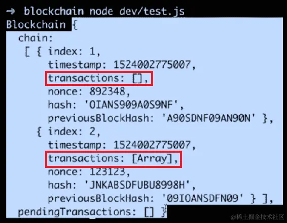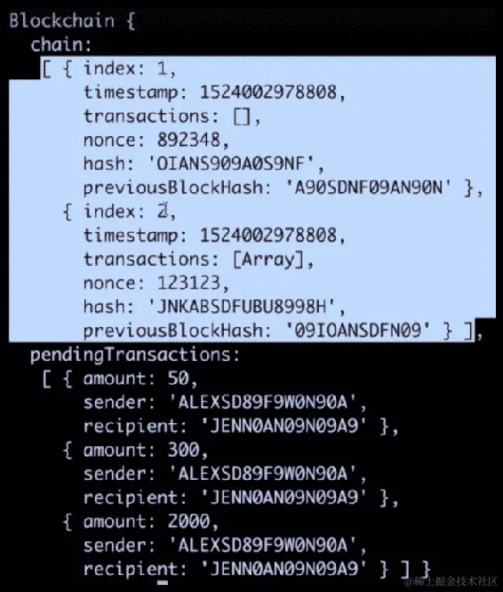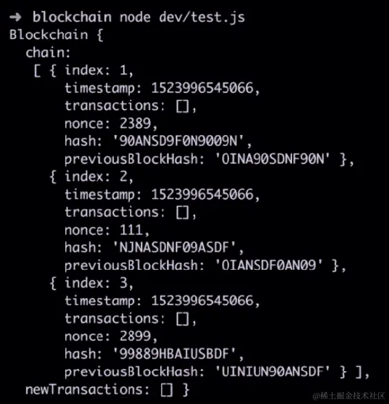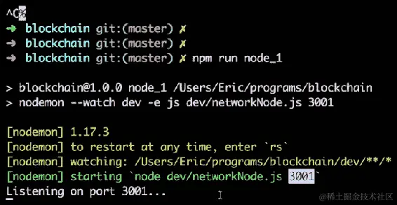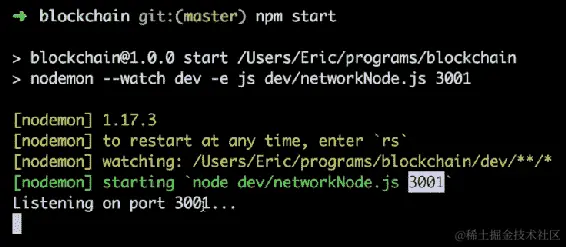 由于我们刚刚使用localhost:3001上的当前节点注册了我们的第二个节点,因此我们的第二个节点的 URL 现在在这个数组中。