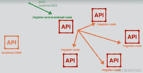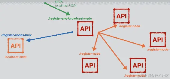 实际上,我们已经在register-and-broadcast-node端点内构建了这个功能。一旦我们构建了这三个端点,我们提到的功能将正常工作。