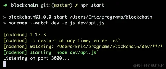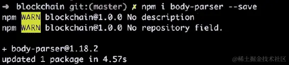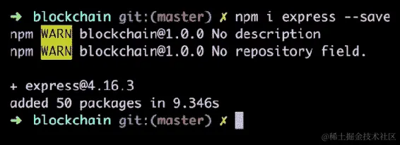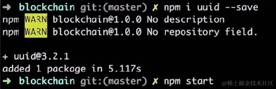 在blockchain目录中,让我们运行以下命令来创建 npm 项目:
