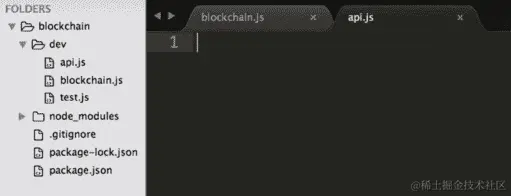 在上述命令行中的touch命令将帮助我们创建提到的文件。blockchain.js文件是我们将输入代码以创建区块链的地方,test.js文件是我们将编写代码来测试我们的区块链的地方。