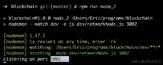 对于这个第一次测试,我们想要将我们托管在端口3002上的第二个节点注册到我们的第一个节点。为此,我们将添加以下突出显示的代码: