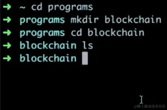 让我们首先创建一个名为programs的文件夹。在这个文件夹里,让我们创建一个名为blockchain的目录。这个目录目前是空的。在这个blockchain目录里,我们将进行所有的编程。我们将在这个blockchain目录中构建我们的整个区块链。