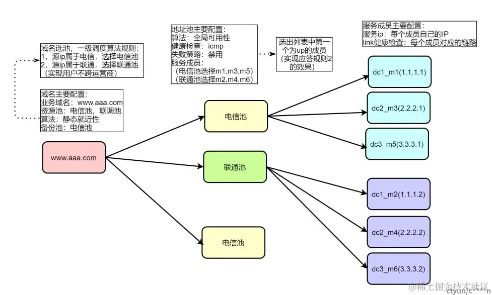 调度的规则,二级调度,一级是域名选池,二级是池选服务成员。