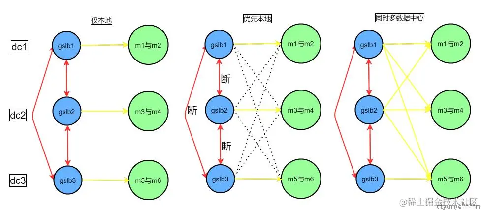 正常情况下dns请求到达任何一台gslb时,应答规则