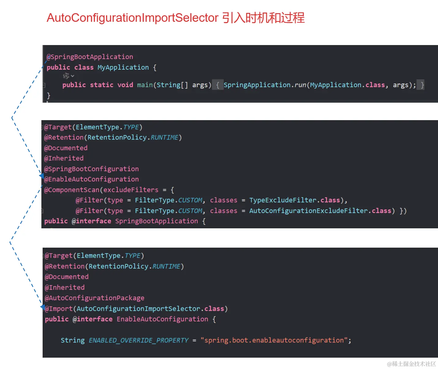 AutoConfigurationImportSelector实现了Spring Framework中的ImportSelector接口,它负责在Spring Boot应用程序启动过程中选择和激活一系列的自动配置类。 - 读取