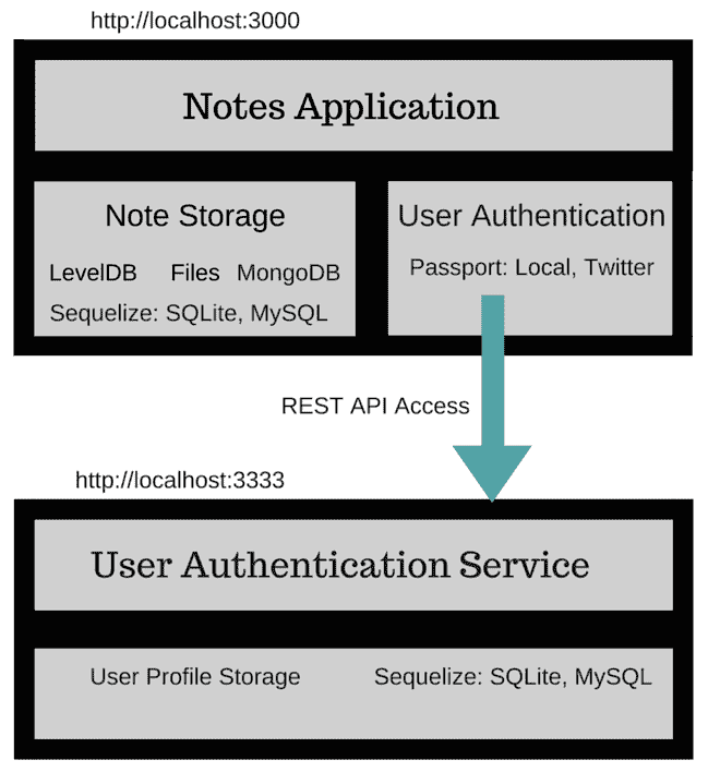 您可以像我们之前那样运行应用程序,首先在一个命令行窗口中启动用户认证服务器,然后在另一个命令行窗口中启动笔记应用程序: