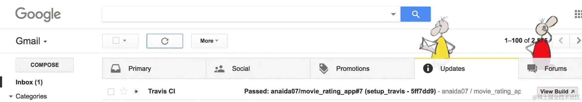 我们还可以添加设置,以便在构建失败或成功时通过电子邮件或任何其他机制通知我们。默认情况下,Travis CI 将通过电子邮件通知我们,如下面的屏幕截图所示: