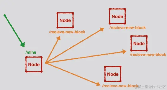- 现在,将新交易广播到网络中的所有其他节点。可以按以下方式完成: