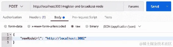 让我们试着理解为什么网络需要同步。我们目前有一个由五个节点组成的去中心化区块链网络。这些节点之间的数据不一致;每个节点上的数据可能不同,这将导致区块链的目的失败。让我们通过一个例子来理解这种情况。在 Postman 中发送一个示例交易,如下截图所示: