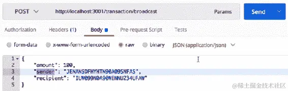 createNewTransaction()方法接受amount、sender和recipient参数。对于我们的端点,让我们假设所有这些数据都被发送到req.body上。因此,这些参数将如下所示在以下代码中进行定义: