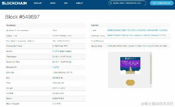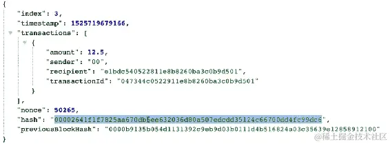 - 然后,从区块链中复制任何一个块的哈希值,并将其粘贴到区块浏览器中: