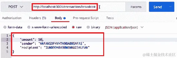 在本节中,让我们构建一个名为/transaction/broadcast的新端点。从现在开始,每当我们想要创建一个新的交易时,我们将访问此/transaction/broadcast端点。此端点将执行两项操作: