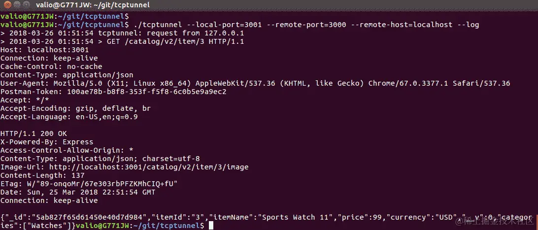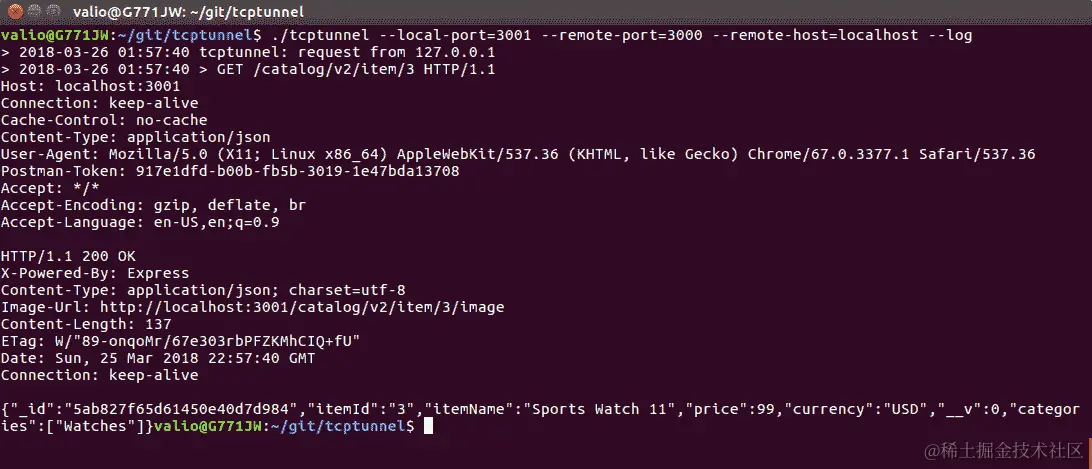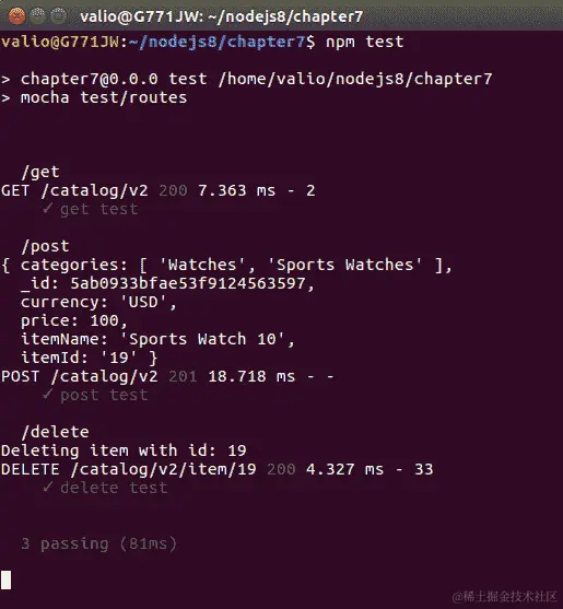 您将看到您的请求被重定向到新路由位置http://localhost:3000/catalog/v1。
