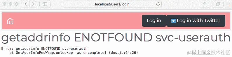 这将打印完整的错误,包括导致失败的原始错误。您可能会看到打印的以下消息:getaddrinfo EAI_AGAIN api.twitter.com。这可能令人困惑,因为该域名肯定是可用的。但是,由于 DNS 配置的原因,它可能在svc-notes容器内部不可用。