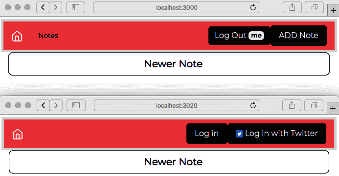 理想情况下,这也将在容器内部起作用。如果在容器内部失败,这意味着 Notes 服务无法访问 Twitter 以处理使用 Twitter 凭据登录所需的 OAuth 过程。