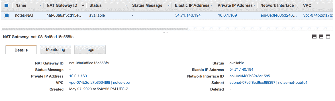 输出将告诉您当前的状态,例如部署服务时的任何错误。但是,要调查与 EC2 实例的连接,我们必须登录到notes-public实例,如下所示: