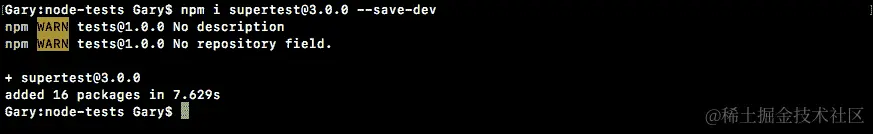 npm i supertest@3.0.0 --save-dev
