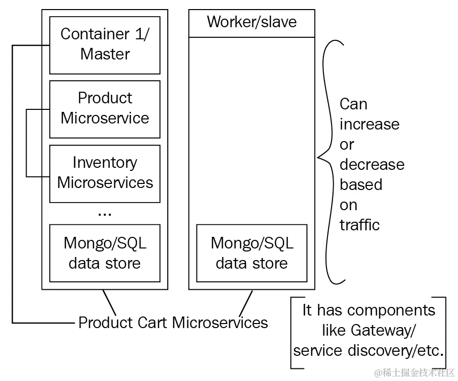 我们将在后面的章节中更详细地研究 API 网关、服务注册表和发现等组件。在这里,它们只是作为整体视图的一部分提到。