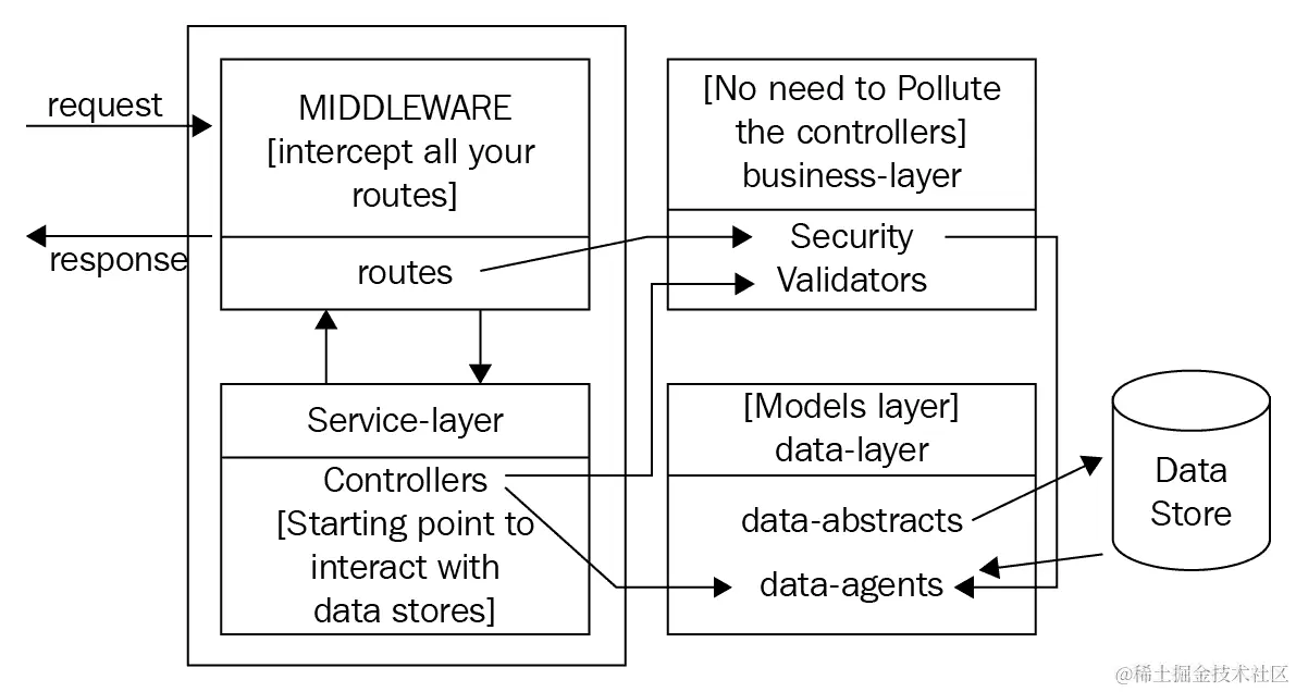 文档存储或数据存储:我们应用程序的数据层。根据我们的需求,我们可以使用任何可用的数据存储。