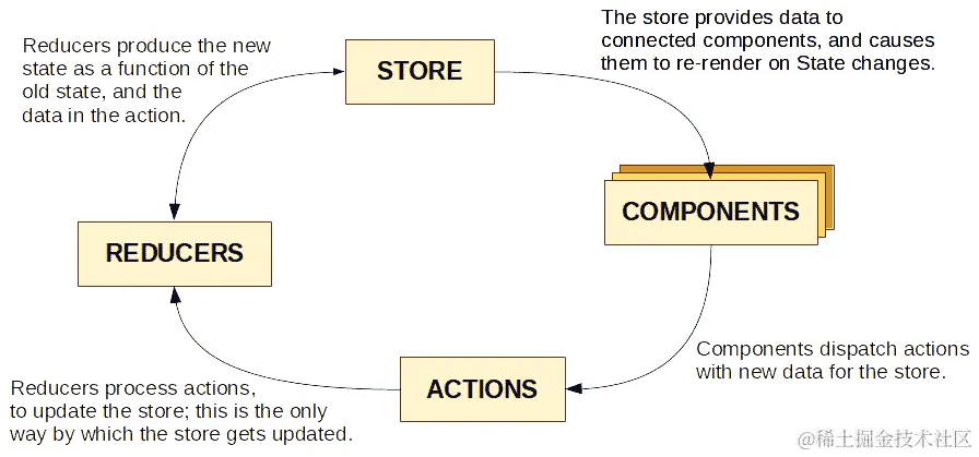 在通常的 Web 开发中,您使用 cookie 或可能使用本地存储来存储访问信息,但在React应用程序中,将令牌(或您使用的任何内容)存储在状态中就足够了。如果需要为 API 调用提供令牌,请记住,操作定义如下: