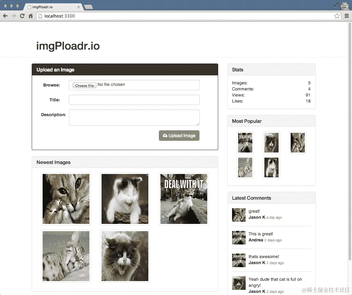 让我们创建一个图像控制器,其中有更多的函数。编辑/controllers/image.js文件并插入以下代码: