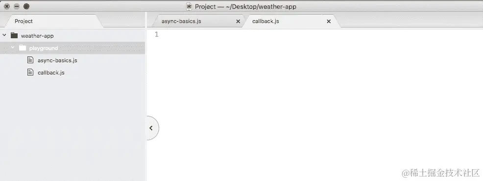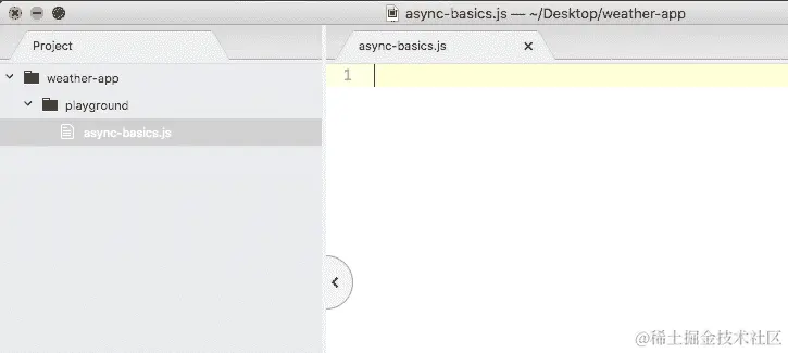 这段代码不会成为天气应用程序的一部分,但在后面创建天气应用程序时,它将非常有用。现在在playground中,我们可以创建这一节的文件。我们将其命名为async-basics.js,如下所示: