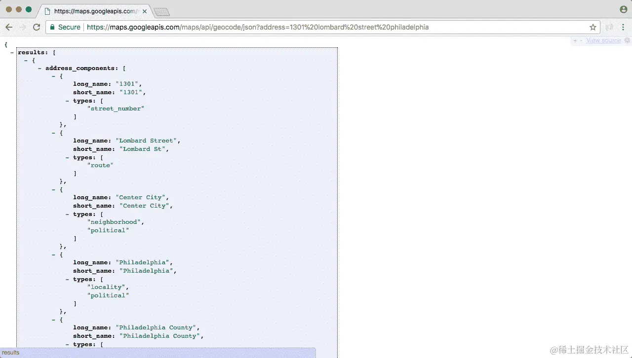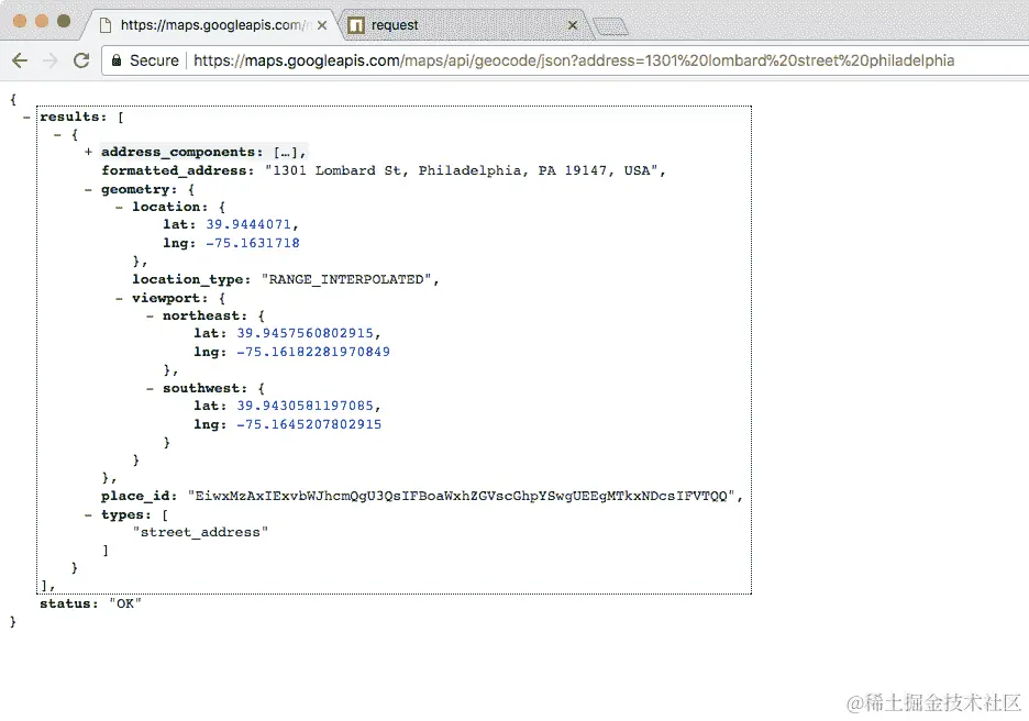 有了这个,我们现在非常接近实际将这两个回调链接在一起。唯一剩下的就是用动态坐标替换这些静态坐标,这些动态坐标将在results对象中可用。