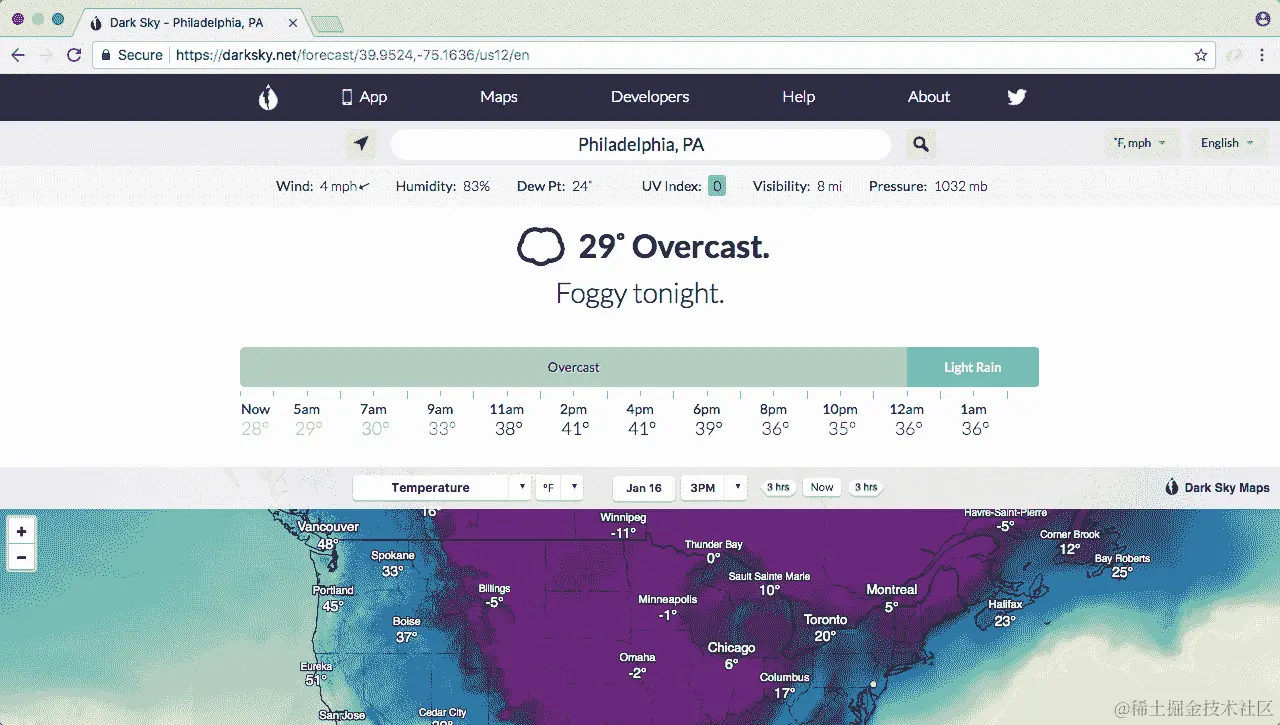 如果你读过任何关于 Node 的文章,你可能会遇到四个术语:异步、非阻塞、事件驱动和单线程。所有这些都是描述 Node 的准确术语;问题是通常就到此为止,而且这些术语非常抽象。Node.js 中的异步编程主题已经分为三章。在接下来的三章中,我们的目标是通过在我们的天气应用程序中使用所有这些术语,使异步编程变得非常实用。这是我们将在这些章节中构建的项目。