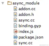 我们将创建一个包含异步方法(async.cc)的文件,一个包含同步方法(sync.cc)的文件,每个文件将在addon.h中以不同方式调用的公共函数,以及将所有内容“绑定”在一起的主addon.cc文件。
