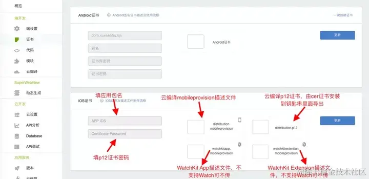 使用APICloud平台开发iOS应用需要用到几个证书,下面的图为各个证书使用的地方。接下来为各个证书的创建教程。