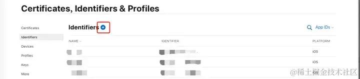 如图,在左侧菜单选择Identifiers,然后点击添加按钮