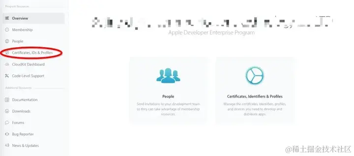 登录成功后选择Certificates, Identifiers & Profiles(如果没有这一项请查看教程最开始的说明),如图: