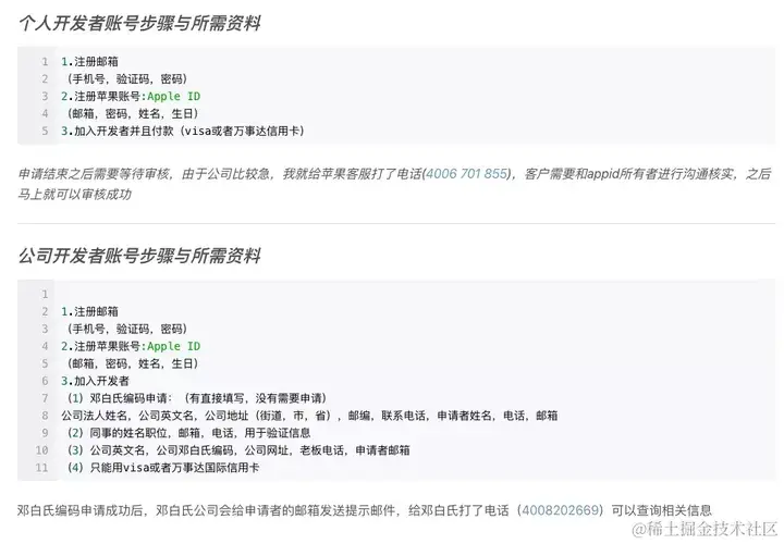 个人账号:个人申请用于开发 Apple App 所使用的账号,仅限于个人使用,可以在 App Store 发布应用,申请比较容易,¥688.00/年 ($99.00/year)。