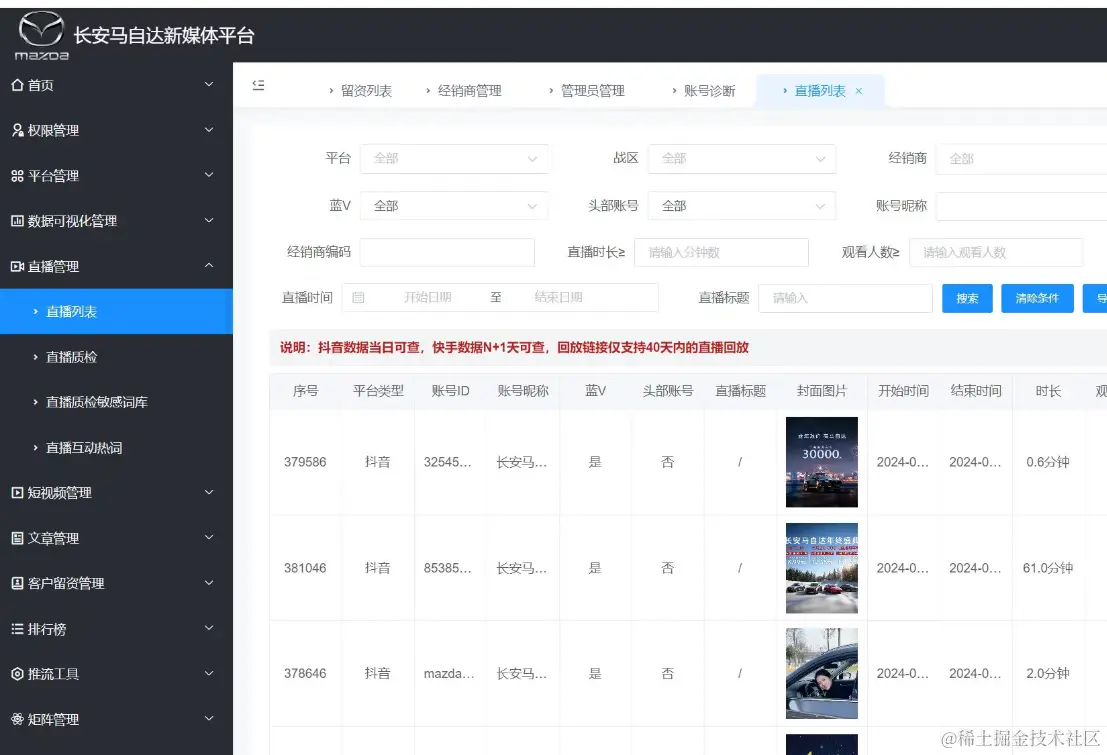 1. 自动采集抖音、快手等平台上4S店的短视频和直播内容。