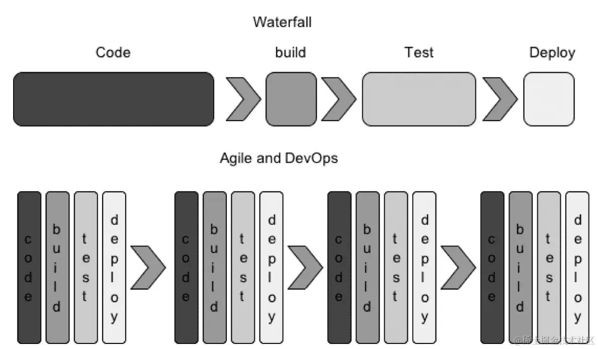 几年前,软件行业使用瀑布模型来管理系统开发生命周期(SDLC)。瀑布模型包括许多阶段,如收集需求、设计解决方案、编写代码、验证代码是否符合用户需求,最后交付产品。为了在每个阶段工作,创建了不同的团队和角色,包括分析师、开发人员、软件架构师、QA 团队、运维人员、项目经理等。每个角色都负责产出并将其交付给下一个团队。