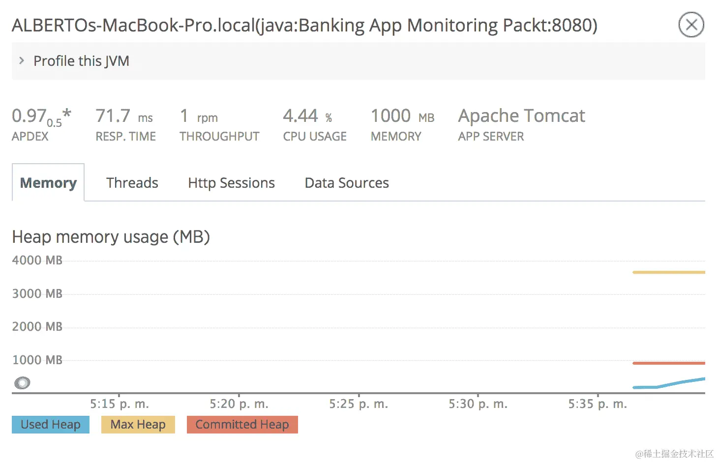 我们将发现,使用虚拟用户模拟时,JVM、内存和线程看起来与在应用程序上导航时有所不同。