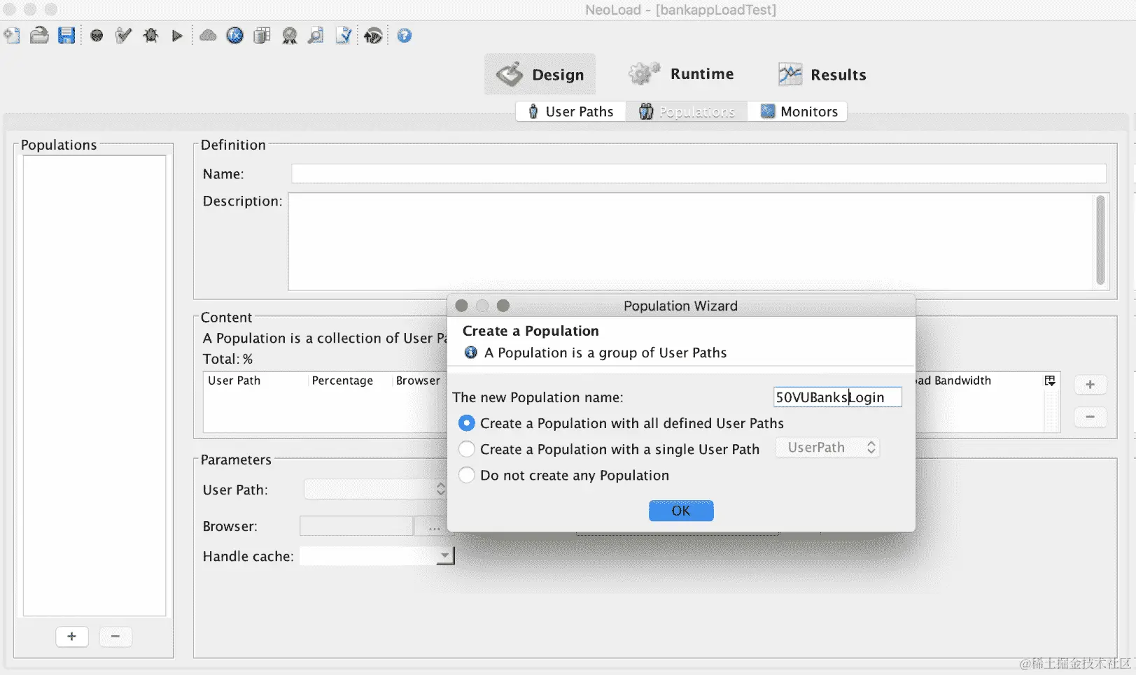 现在,让我们生成负载测试,创建一个人口(模拟用户场景):