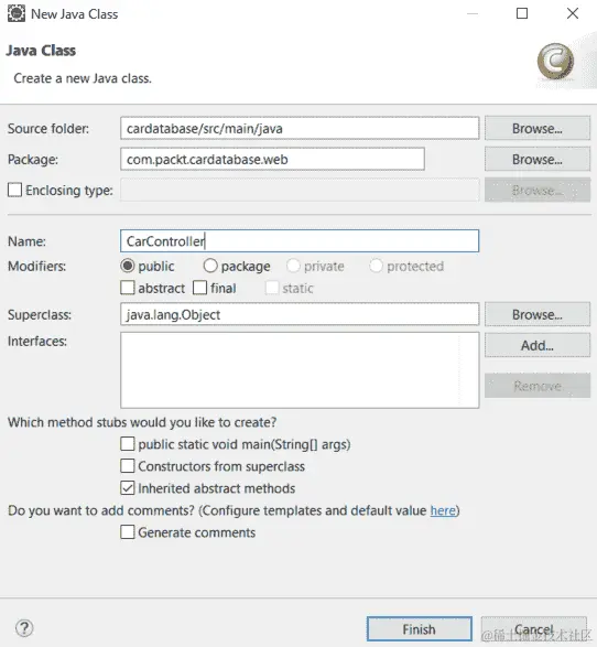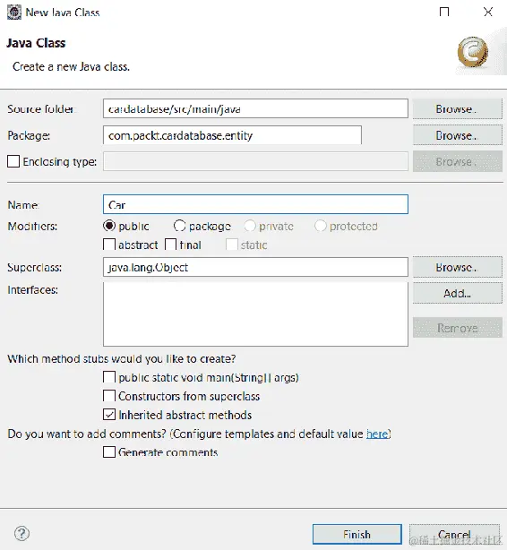 接下来,我们将为我们的汽车存储库创建单元测试,以测试 CRUD 操作。在根测试包中创建一个名为CarRepositoryTest的新类。如果测试仅关注 JPA 组件,则可以使用@DataJpaTest注解,而不是@SpringBootTest注解。使用此注解时,H2 数据库、Hibernate 和 Spring Data 会自动配置进行测试。SQL 日志记录也将被打开。测试默认是事务性的,并在测试用例结束时回滚。TestEntityManager用于处理持久化实体,并设计用于测试。您可以在以下看到 JPA 测试类骨架的源代码: