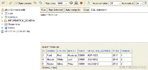 我们将添加第一个测试用例来测试向数据库添加新汽车。使用TestEntityManager提供的persistAndFlush方法创建一个新的car对象并保存到数据库中。然后,我们检查如果成功保存,汽车 ID 不能为空。以下源代码显示了测试用例方法。将以下方法代码添加到您的CarRepositoryTest类中: