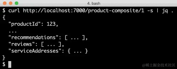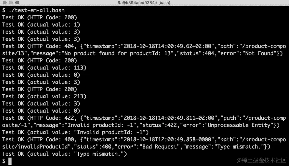 测试脚本实现了在手动测试 API部分描述的手动测试,可以在$BOOK_HOME/Chapter03/2-basic-rest-services/test-em-all.bash找到。