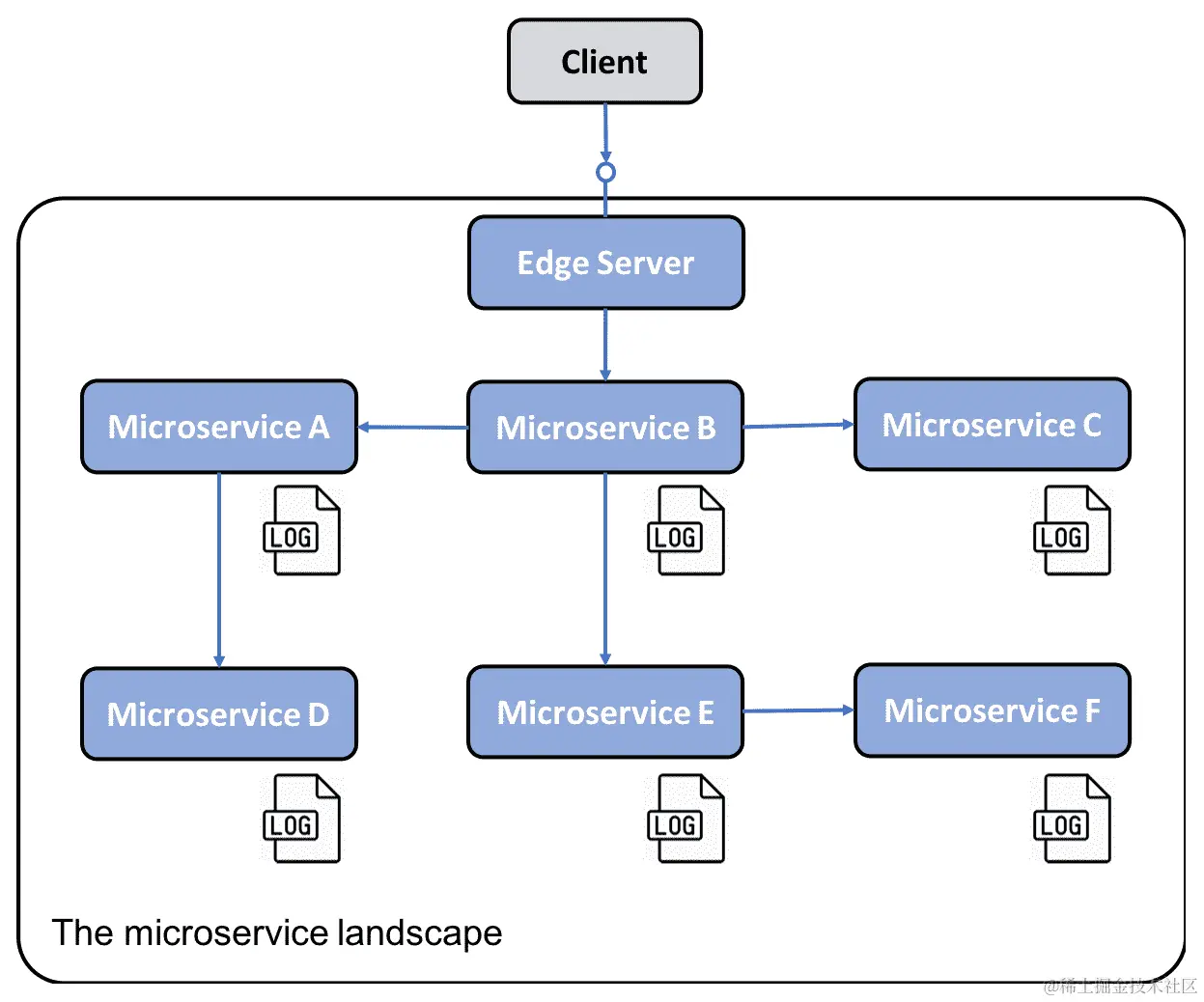 从多个分布式组件中收集日志文件并关联组件相关的日志事件是困难的,但可行的,因为组件的数量是固定的,且事先已知。