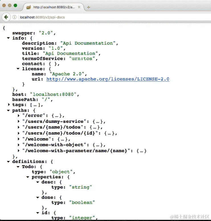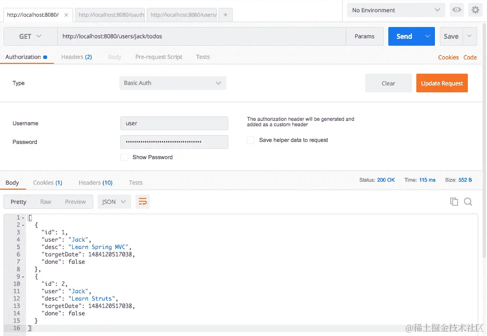 当我们向一个不存在的todo(http://localhost:8080/users/Jack/todos/222)发送一个GET请求时,我们得到了下面代码片段中显示的响应: